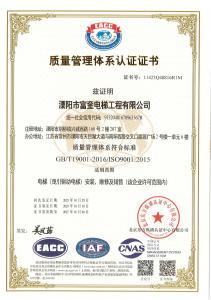 溧陽市富奎電梯工程有限公司 溧陽市富奎電梯工程有限公司是于二OO八年一月九日在原前身溧陽市電梯工程公司基礎(chǔ)上成立的,是專業(yè)從事電梯銷售安裝維修、保養(yǎng)的企業(yè)。是國家質(zhì)監(jiān)總局頒發(fā)的特種設(shè)備安裝、改造、維修A級安裝許可證單位。公司組織機(jī)構(gòu)實(shí)行總經(jīng)理負(fù)責(zé)制,公司下設(shè)管理部、銷售部、安裝維修部、質(zhì)安部、財(cái)務(wù)部,公司另外設(shè)十二個分公司:四川分公司、江蘇分公司、上海分公司、浙江分公司、湖南分公司、遼寧分公司、山東分...